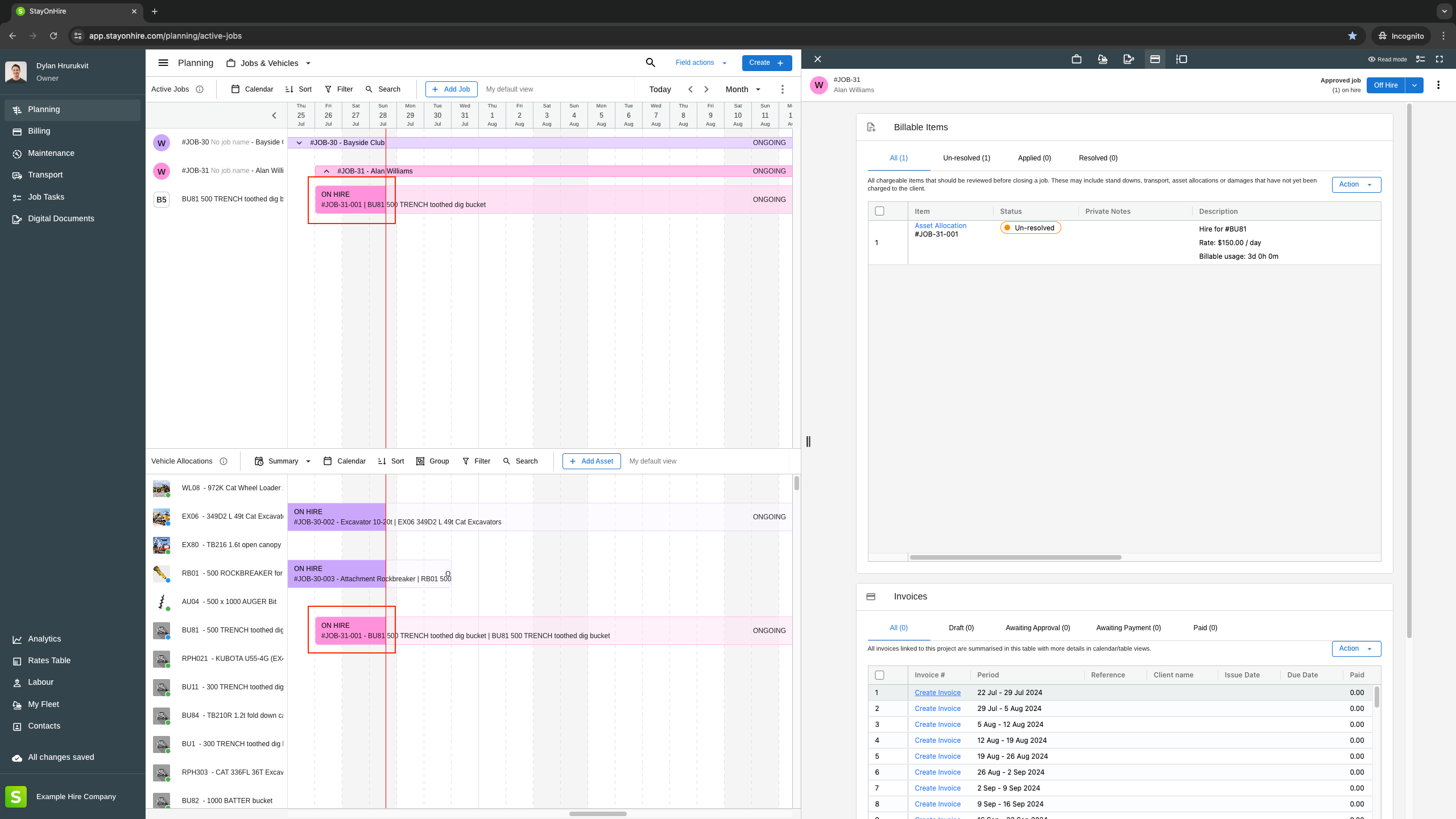 3. Once on hired, you will see the allocation become a more 'solid' filled colour in your calendar, and appear with the status "ON HIRE":