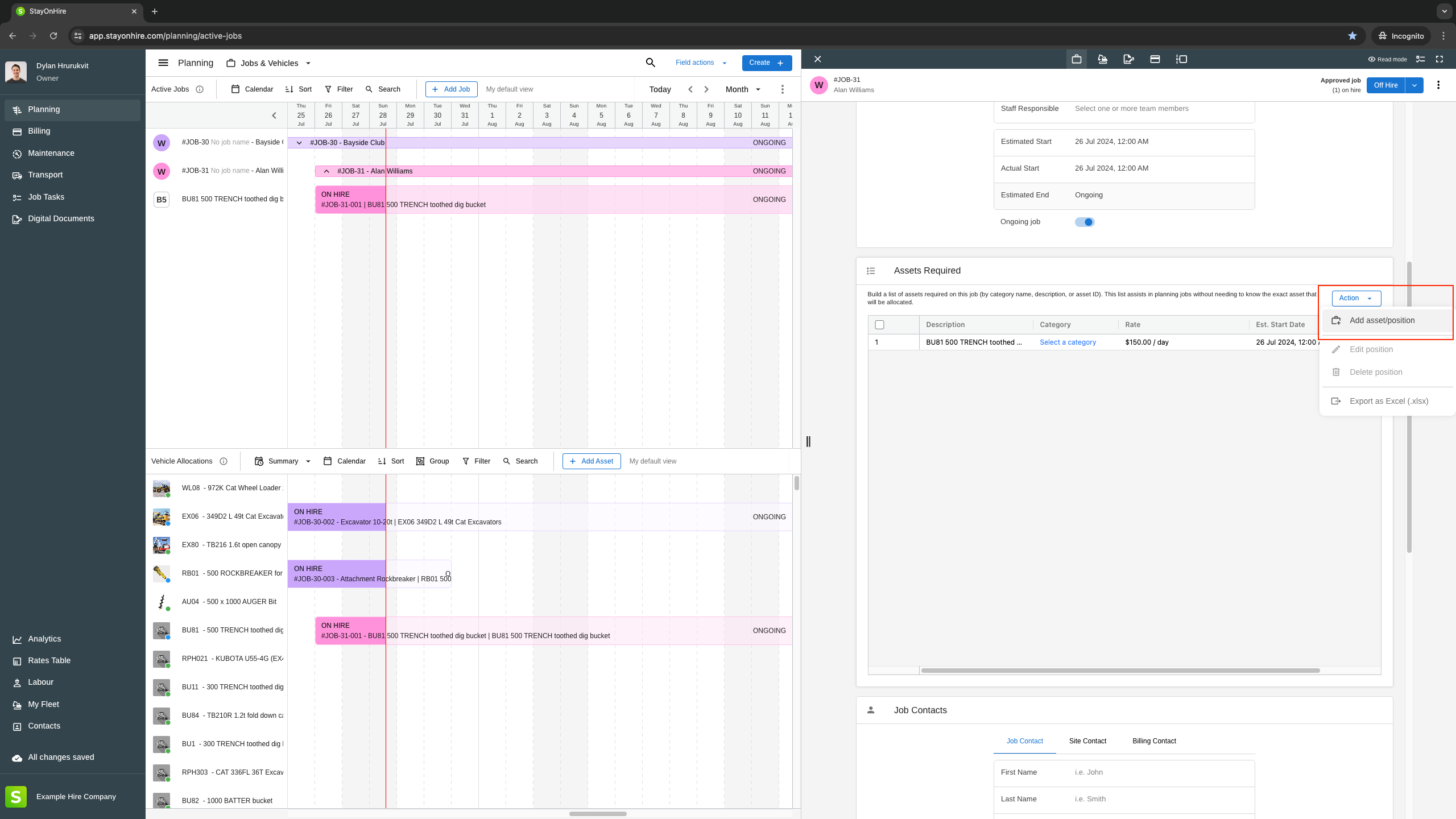 If you **don't yet know** what asset you want to allocate to a job, such as when a job is still being tendered or quoted, a list of assets can be built directly to a job through the 'Assets Required' table by adding an 'Asset Position'.